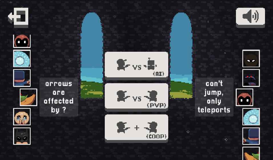 任意箱这款游戏是个可以同屏对战或合作的趣味游戏,玩法控制分别是跳跃和开火,难度不高十分容易上手,支持三个模式,分别是和AI对战,和玩家对战以及和玩家合作。