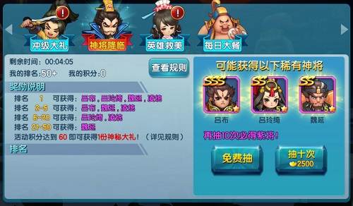 免费抽吕布 积分排名得神将