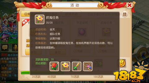 抓鬼任务:在完成以上环节以后,基本能拿经验和能做的都做了,剩下时间就抓鬼吧,领取了双倍点数,挂机抓鬼,很不错,到当日晚上速度快可以达到50级;在没双倍点数情况每天限制100个鬼;有双倍点数没有限制!